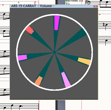Bonsoir Pierre, le dessin que tu vois dans mon message précédent correspond à ma partition qui a 7 portées, il y aura autant de secteurs que de portées, cela sera valable pour toute partition, qu'elle comporte 4 mesures ou 4000... et 1 portée ou 50... le script opère tant que la musique joue. Je pense mettre un dispositif pour choisir les couleurs, sauvegardé d'une session à l'autre et un autre pour agrandir/rétrécir le dessin. Je regarde ça. Amistats, Danièl.